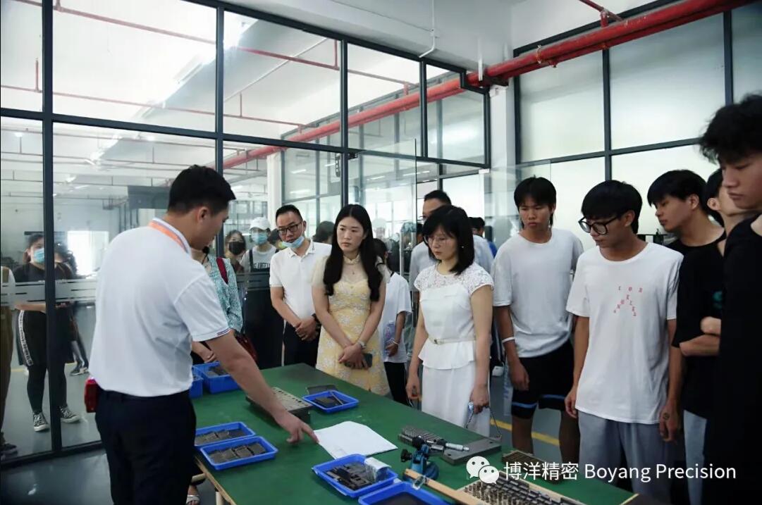 当天上午,在博洋精密有限公司总经理汤绍成的带领下,参加活动的创业青年首先走近车间及生产一线,大家绕有兴趣地边听边记。