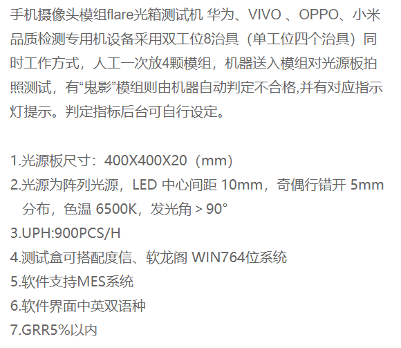 摄像头模组Flare测试光箱